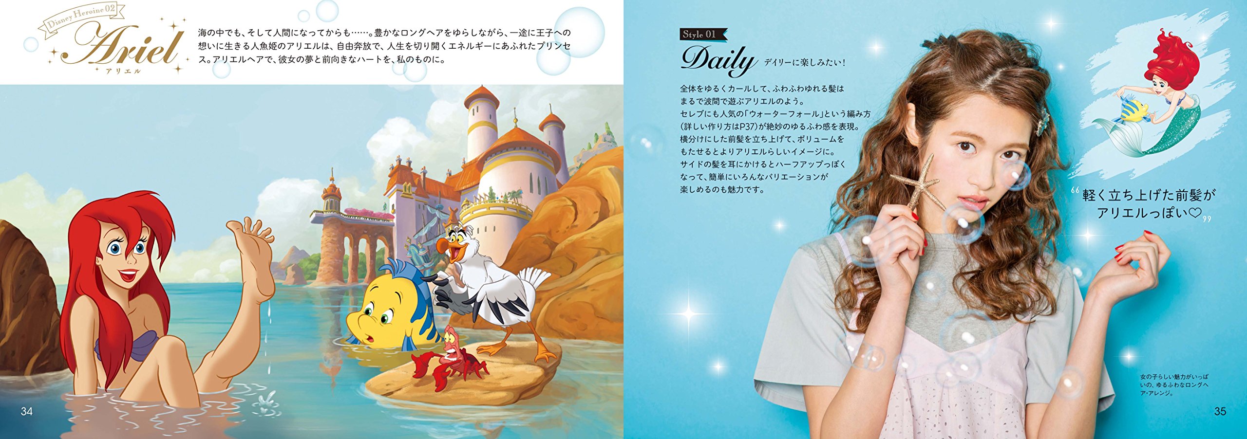 不要少看日本女生對迪士尼的熱愛,她們瘋狂程度真的不是蓋的。很多可愛系的服裝品牌都會跟迪士尼合作,推出一些公主系列的衣服及飾物。例如Secret Honey、Liz Lisa、Axes Femme等。為了整體形象上更貼近迪士尼公主,也要留意頭髮造型和妝容。在5月26日發售的「ディズニー ヘアアレンジブック」(迪士尼頭髮造型書)裡,提供了七位公主跟Tinker Bell的頭髮造型教學,全部都由造型師金子真由美介紹。
