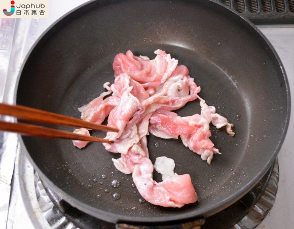 炒熟那堆豬肉,等方包焗好了就放在它上面。