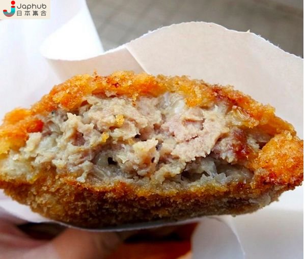 以100%和牛炸成,壓倒性的肉汁吸引不少日本人排隊購買!