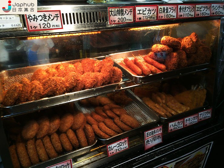 ▼店內有多款炸物供應,想吃最便宜的可選70円的咖哩薯餅!