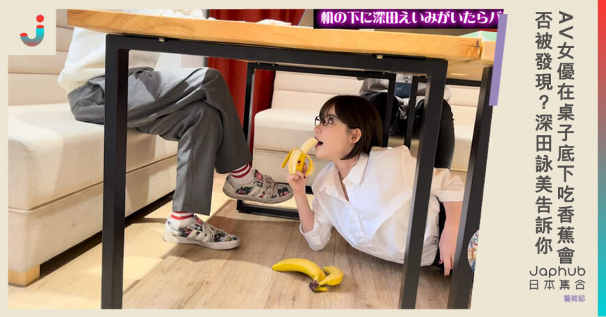 ▼影片長達11分鐘,在桌子底下的深田看起來肚子餓了,更拿起了放在旁邊的香蕉來吃