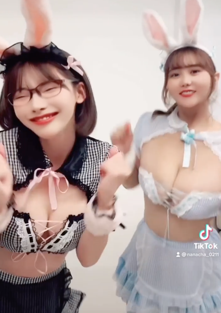 娜娜茶在IG上PO出一段9秒的抖音影片,影片中可以看到2人打扮成可愛的兔子,上衣根本包不住白又大的雙峰,接著她們在鏡頭前搖晃,胸前屬實把大家晃暈了。