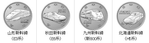 今次發行的4款100日圓硬幣分別為山形新幹線、秋田新幹線、九州新幹線及北海道新幹線,發行量由297萬多枚至301萬多枚不等。市民可以在財務省網頁列出的金融機構,以等值換領這些硬幣,而每人最多可換每條路線2枚,共計8枚的硬幣。