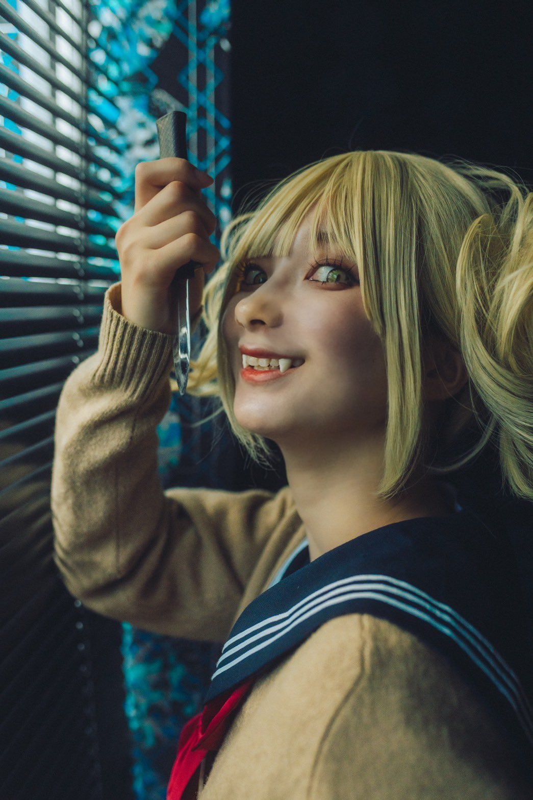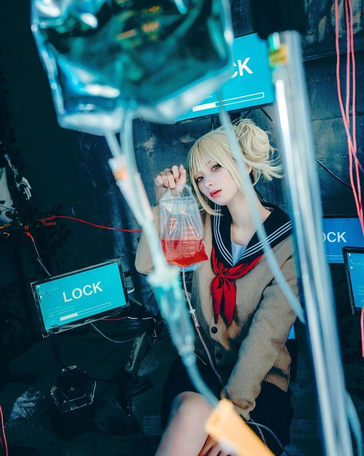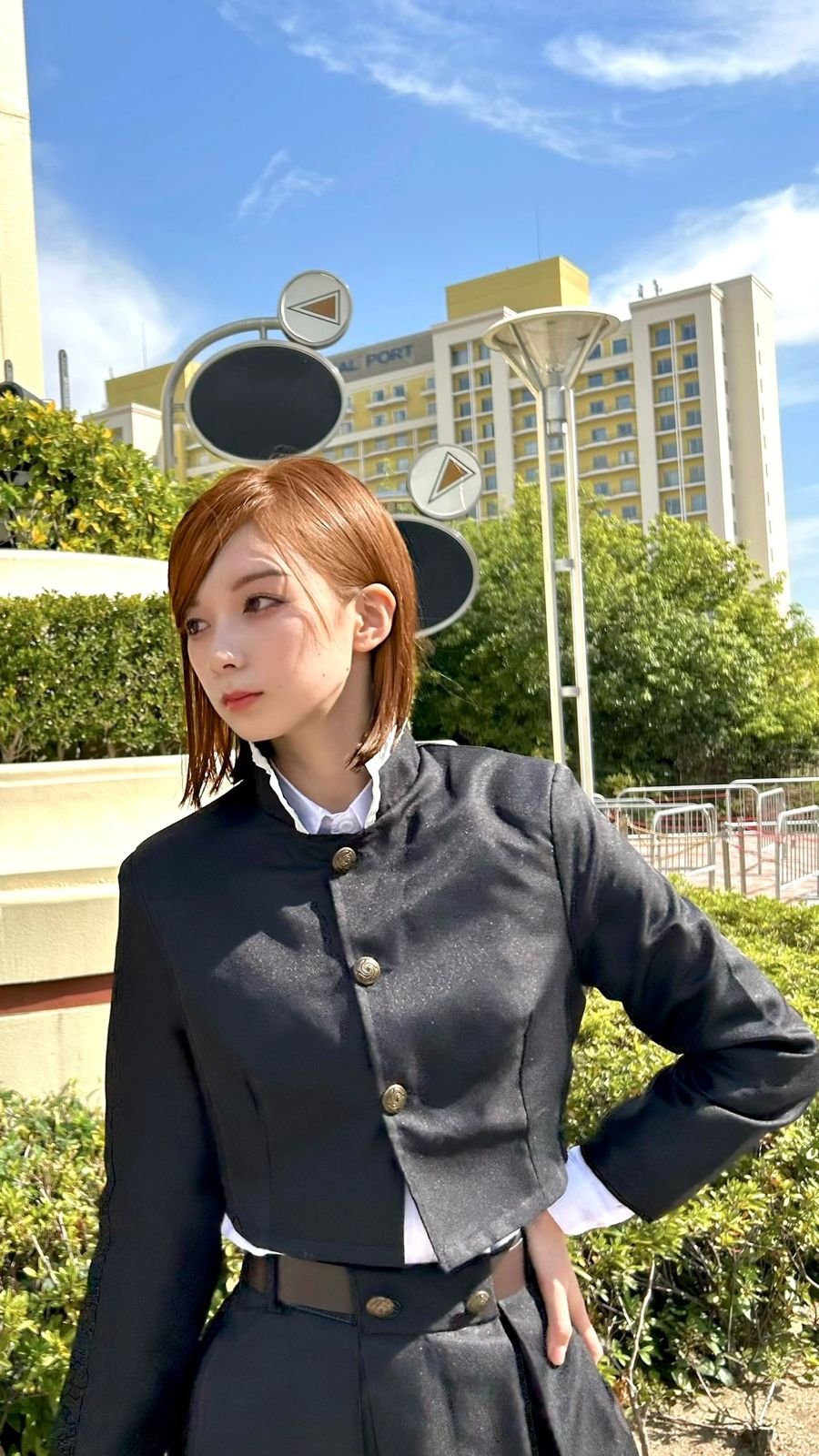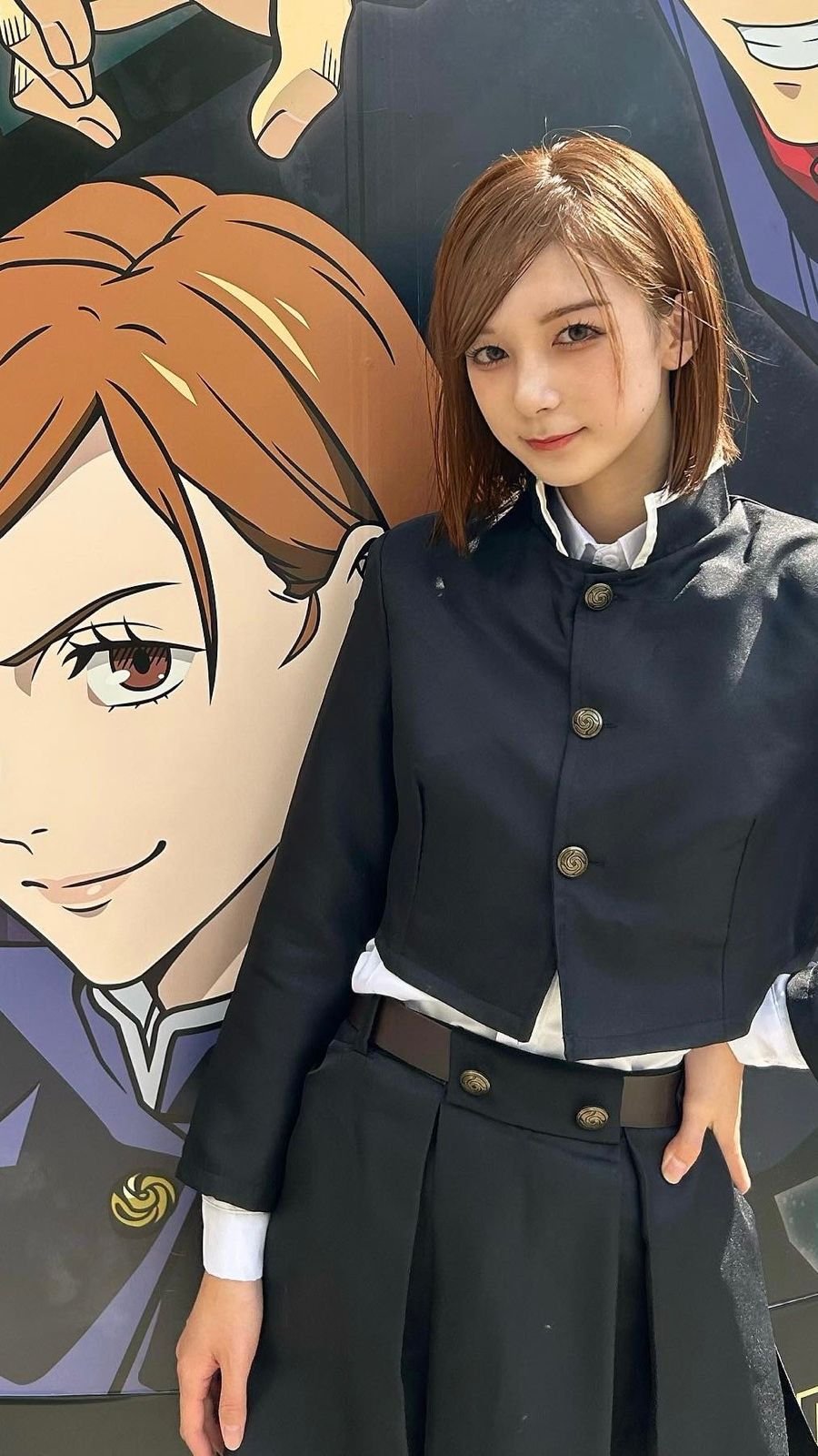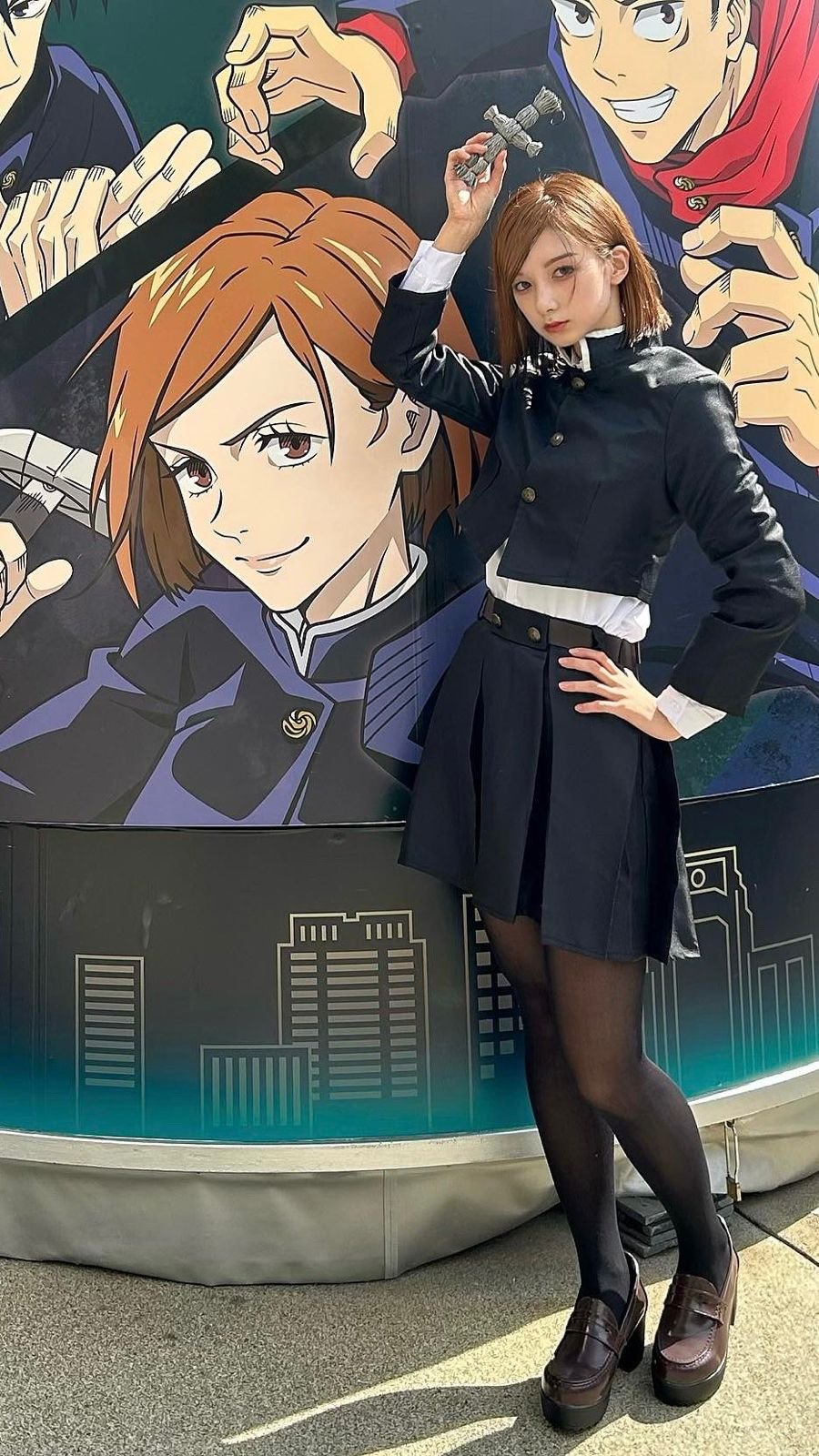 她穿上釘崎的藍色制服,橙色短髮加上手持鐵鎚的造型,粉絲直喊:「這就是活生生的野薔薇啊!」。