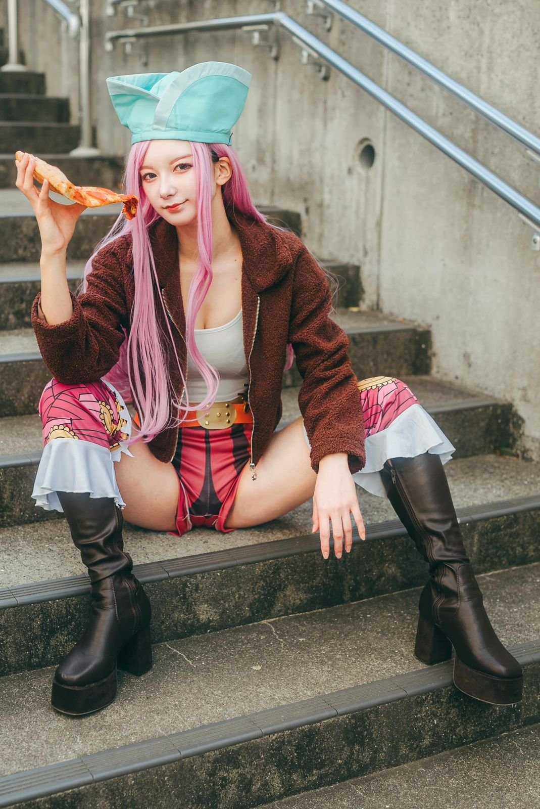 之前,她也Cosplay過《航海王》的珠寶·邦妮,粉色長髮跟性感造型把角色的野性魅力詮釋得淋漓盡致,粉絲驚嘆:「レイラちゃん的邦妮,性感到炸!」
