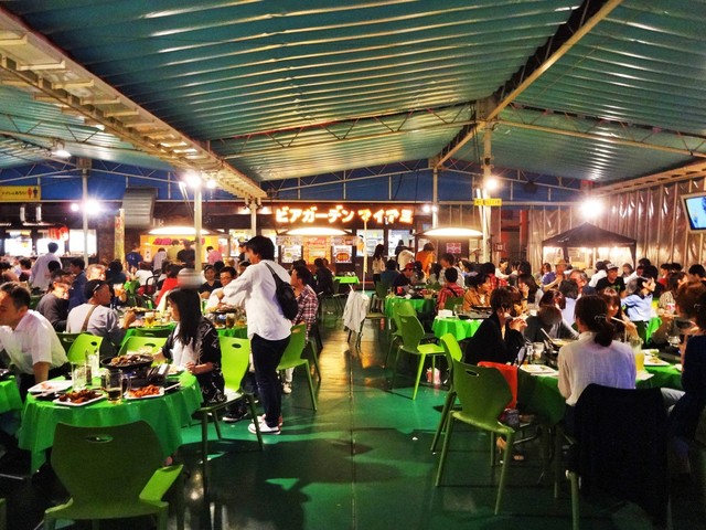 從名古屋車站乘一個站的地下鐵到国際センター站,就能到達這個啤酒園。它的陳設充滿懷舊氣息,好像去了一個廟會。除了基本的任吃食物之外,還可以額外以金券或購買一些特別的菜式,例如海螺、蠔這些下酒菜都是很受歡迎的。
