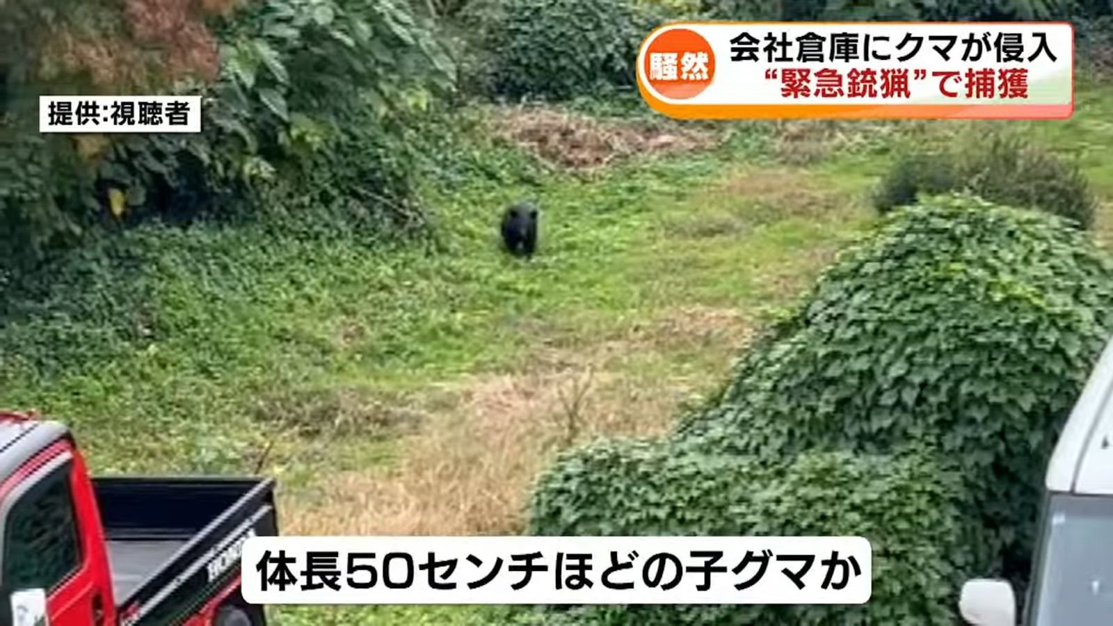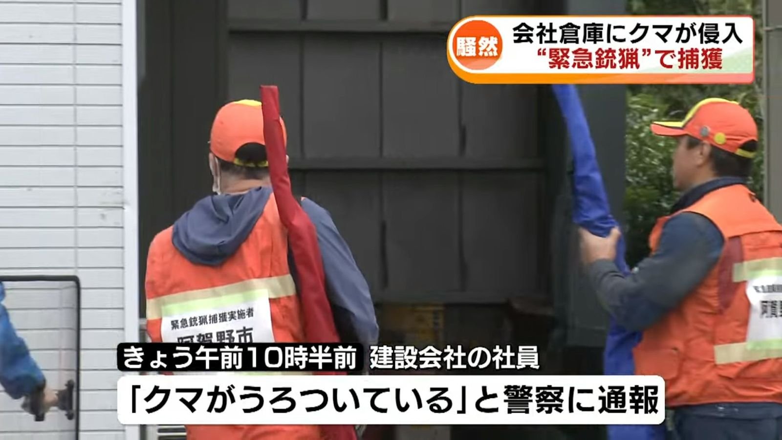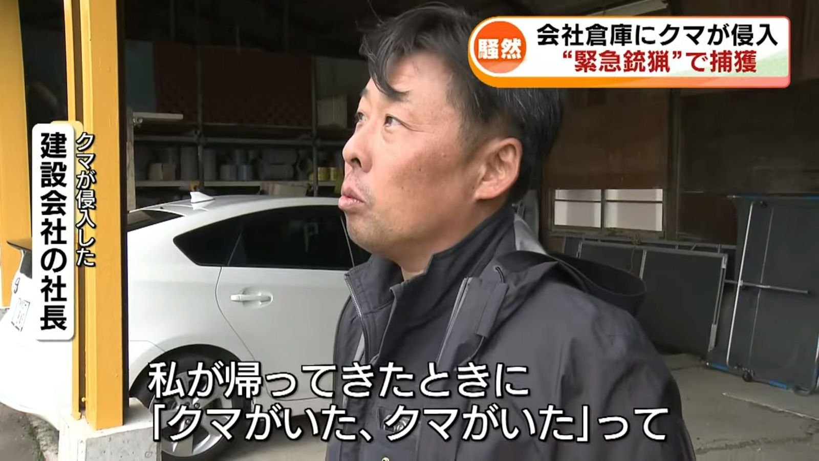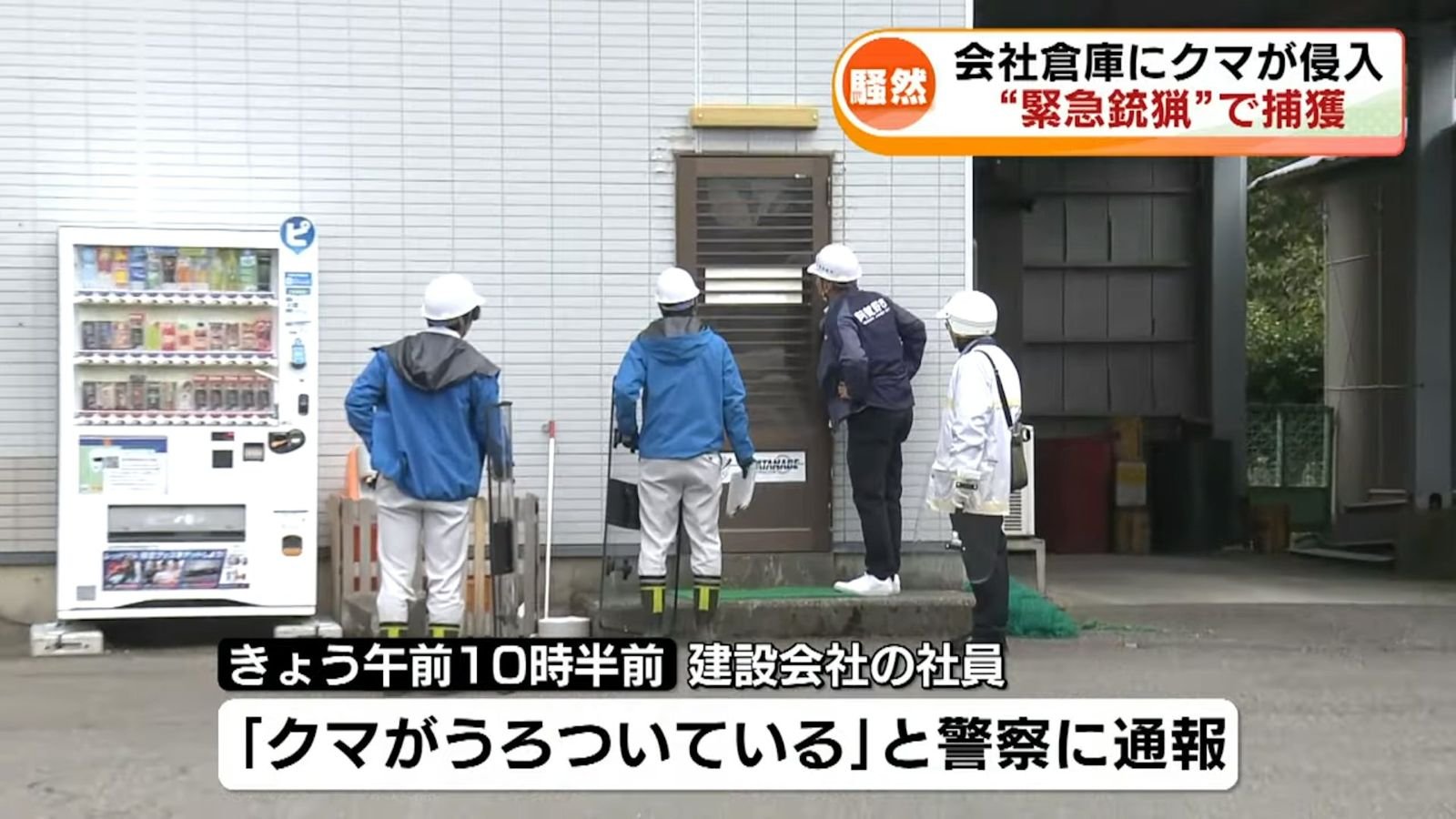 10月31日上午,阿賀野市一建築公司倉庫外,黑熊悠哉現身,毛茸茸的身影晃進門,5員工嚇得四散逃命,熊「啪」一聲關門反鎖自己!