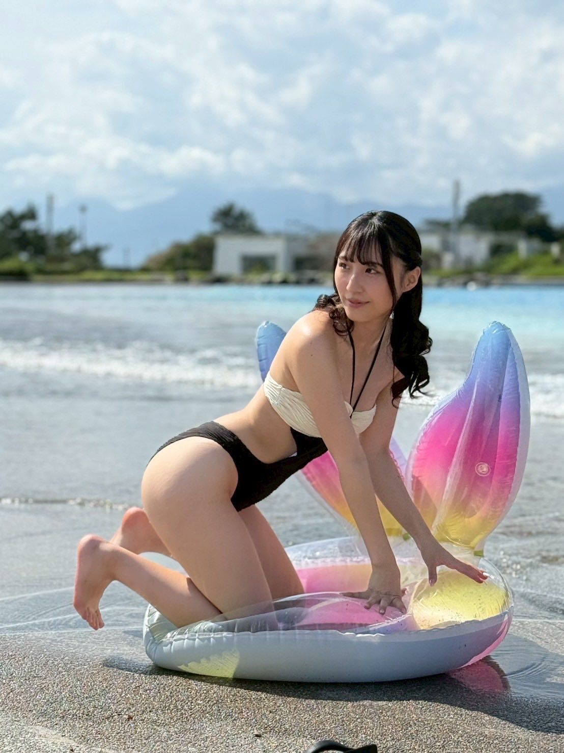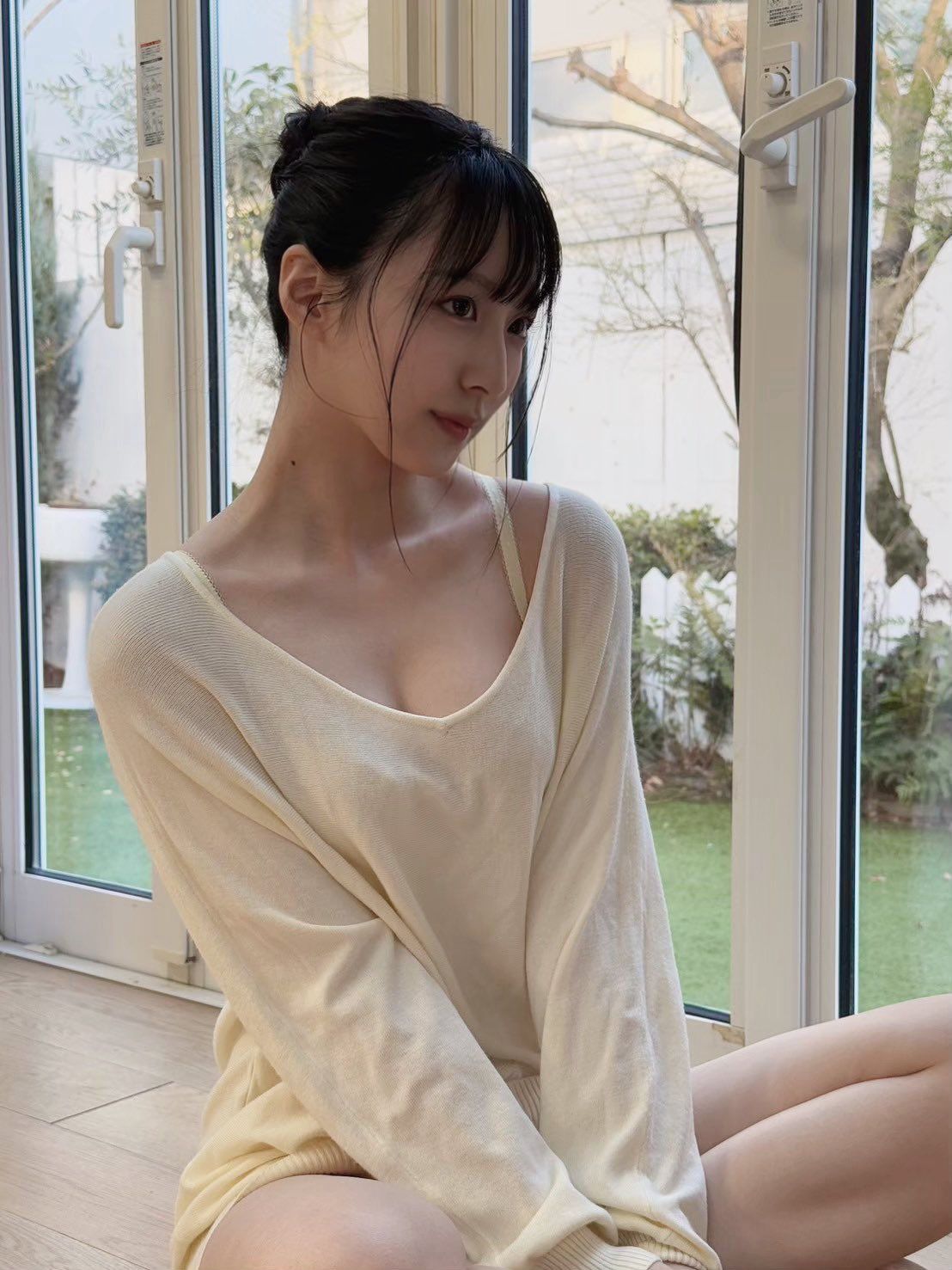 圓潤臉龐像小動物般討喜,誰知2025年2月在《週刊FLASH》首本寫真集《新しい空》全裸登場,一出場就以清純鄰家風圈粉啊~😊