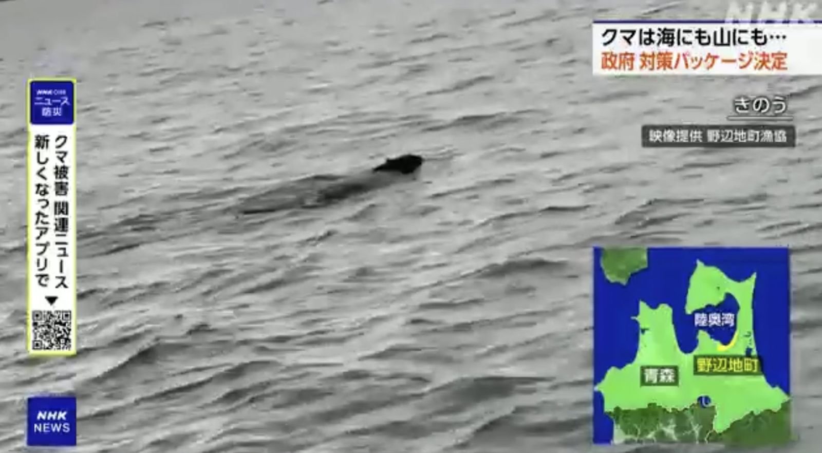朝日新聞報導,熊可能是從山林下海覓食,暖化讓果實短熊膽子大到渡泳,離岸幾百米外有民居,漁業合作社副會長說:「應對熊患得山海兩頭顧。」