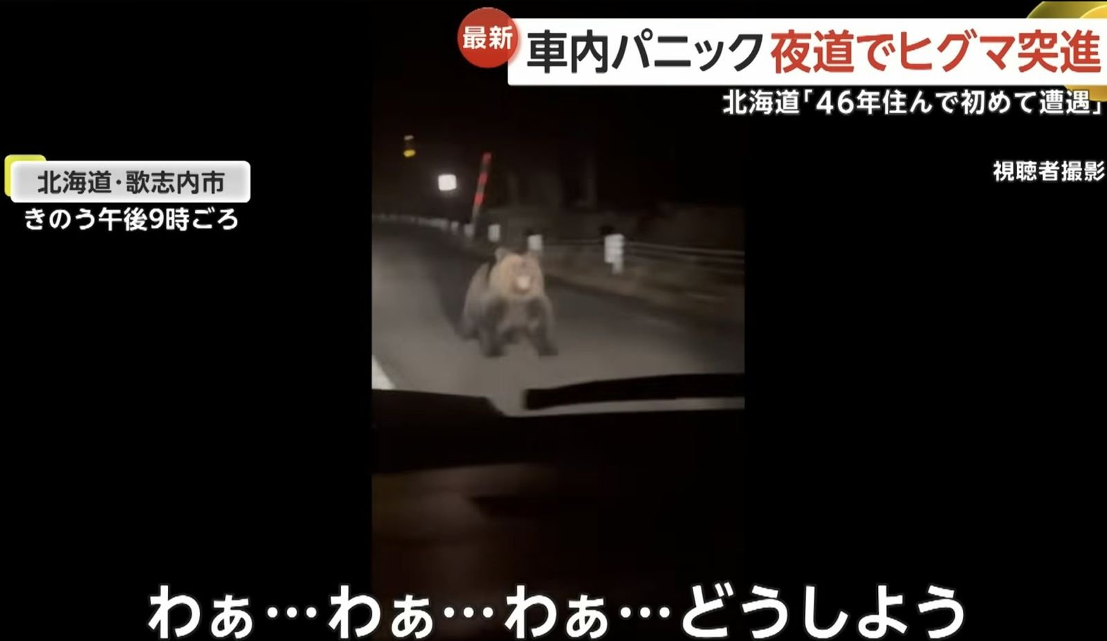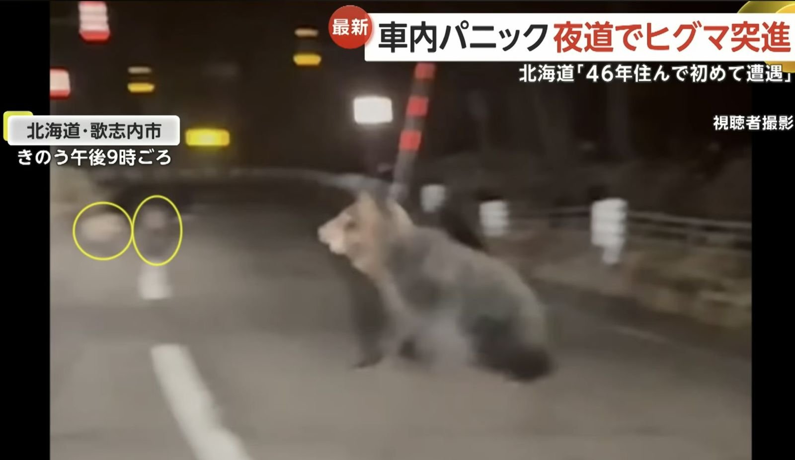 哎喲,北海道的夜路本該是星空駕車的詩意時刻,誰知11月23日晚9點,歌志內市一對母女開車時,前方突然竄出2米體長棕熊,朝車輛狂奔而來!