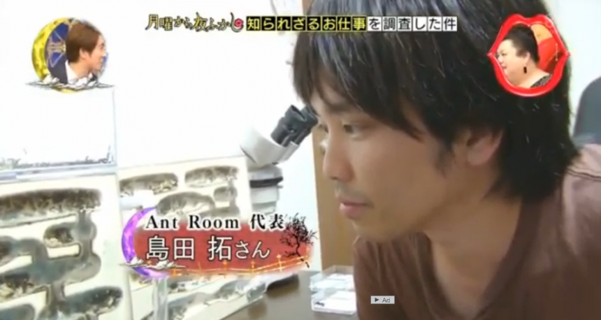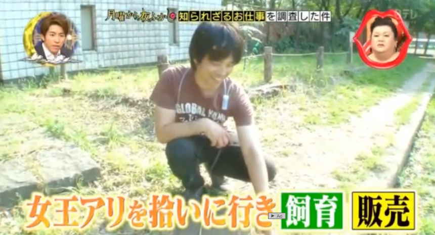 他從少年時代開始飼養螞蟻,相關知識十分豐富。現在他的工作就是四處尋找蟻后,細心飼育,並進行買賣。