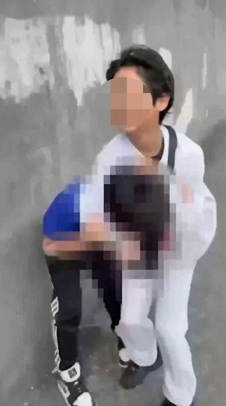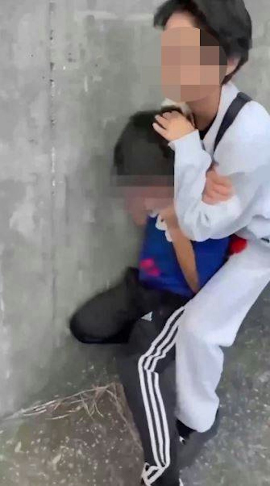 影片一曝光,網友炸鍋了。主片長43秒,那國中生從背後夾住小學生的脖子,施展所謂的「裸絞」招式,足足勒了33秒。小孩掙扎得厲害,臉扭曲成一團,滿頭大汗,