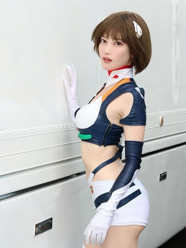 雪白肌膚在賽車服下若隱若現,視覺上簡直是甜美炸彈。近期她延續擔任新世紀福音戰士賽車隊的形象大使,cosplay綾波零的藍髮造型,瞬間引爆熱議,