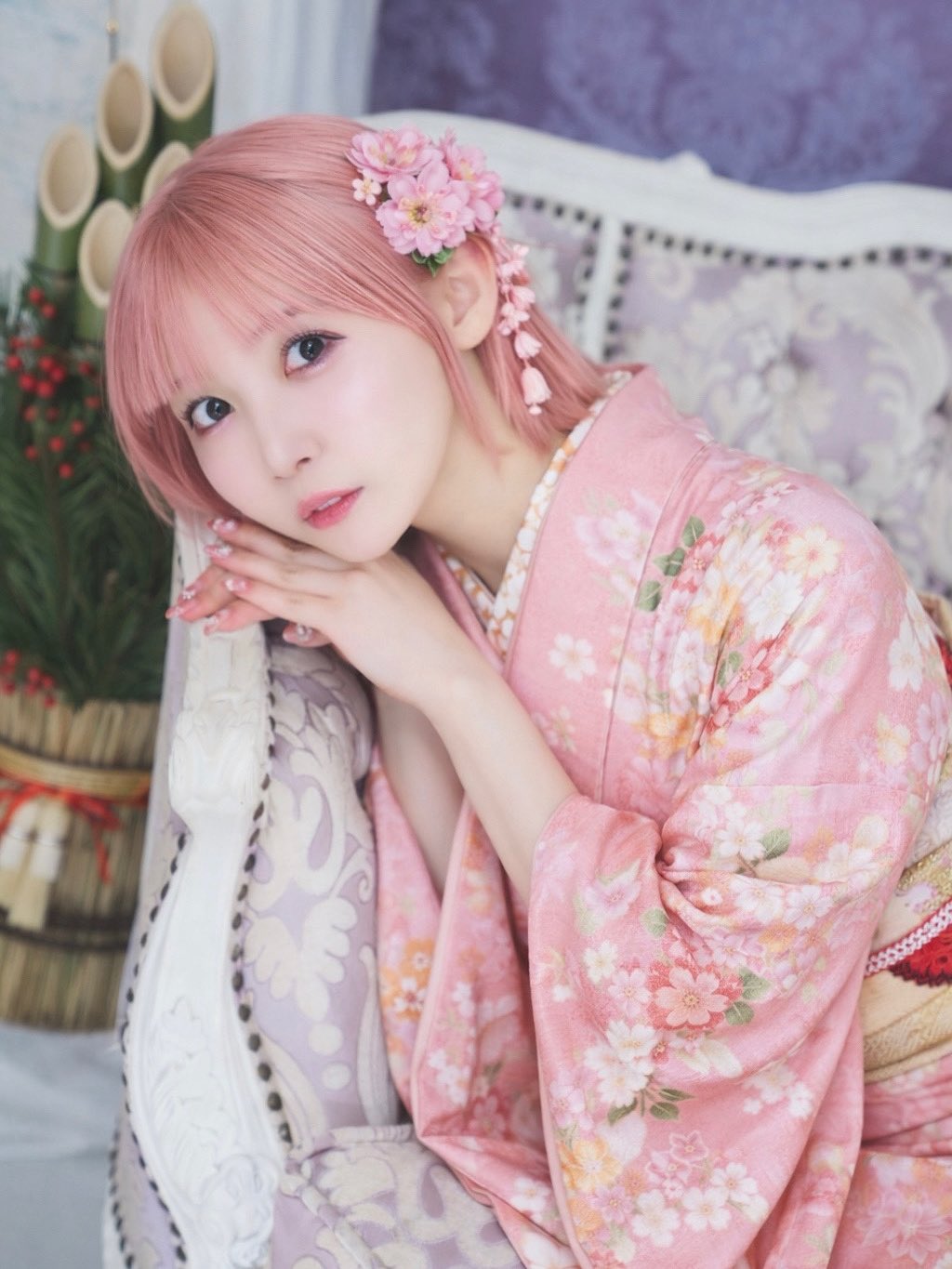 另一組溫泉旅行主題,她裹著薄紗浴袍半遮半掩,那種若隱若現的柔軟線條,直接把可愛推向另一個層次。