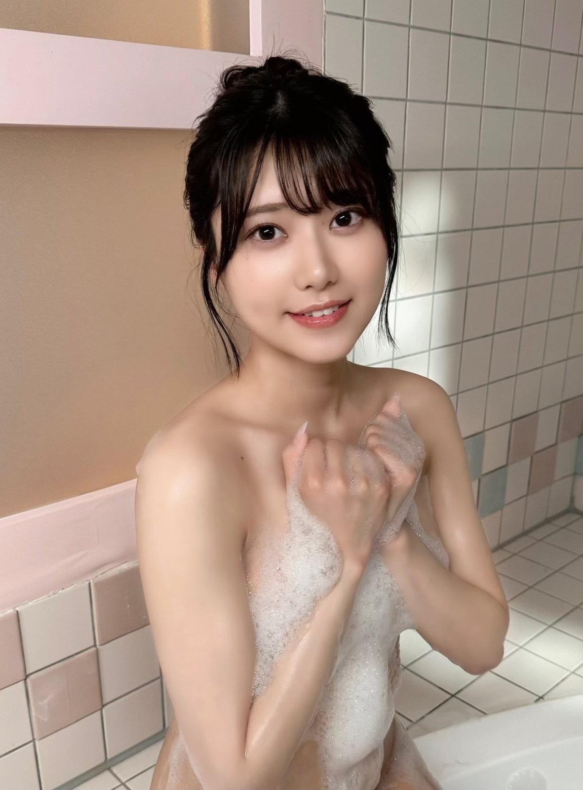 Dcard用戶分享「天然可愛妹子挑戰泡泡浴,甜蜜到不行」。