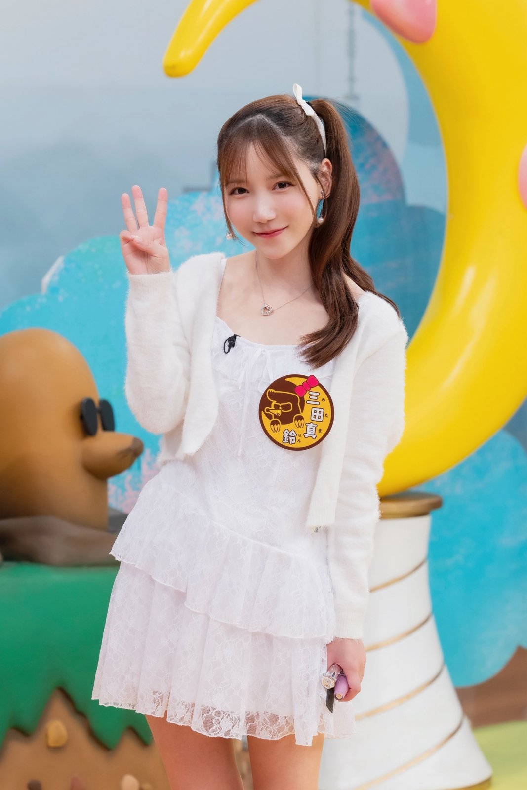 三田真鈴以21歲青春年華亮相,157公分嬌小身材配上77公分F罩杯,55腰圍89臀圍形成誘人S型曲線,視覺上像極了天然玩偶,散發強烈反差誘惑。