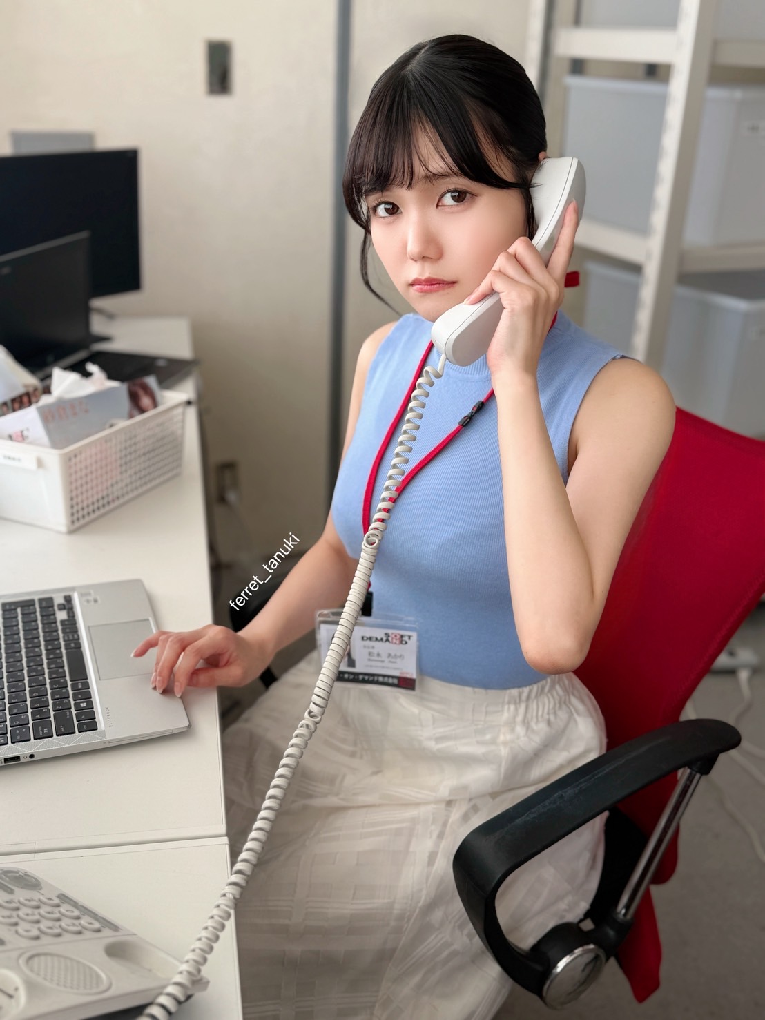 松永あかり在這部辦公室主題片中,飾演一位忙碌OL,劇情從AD訓練開始,她用那雙俏皮眼睛盯著同事,燈光灑在桌面文件上,兩人聊天時的曖昧笑容充滿暗示。