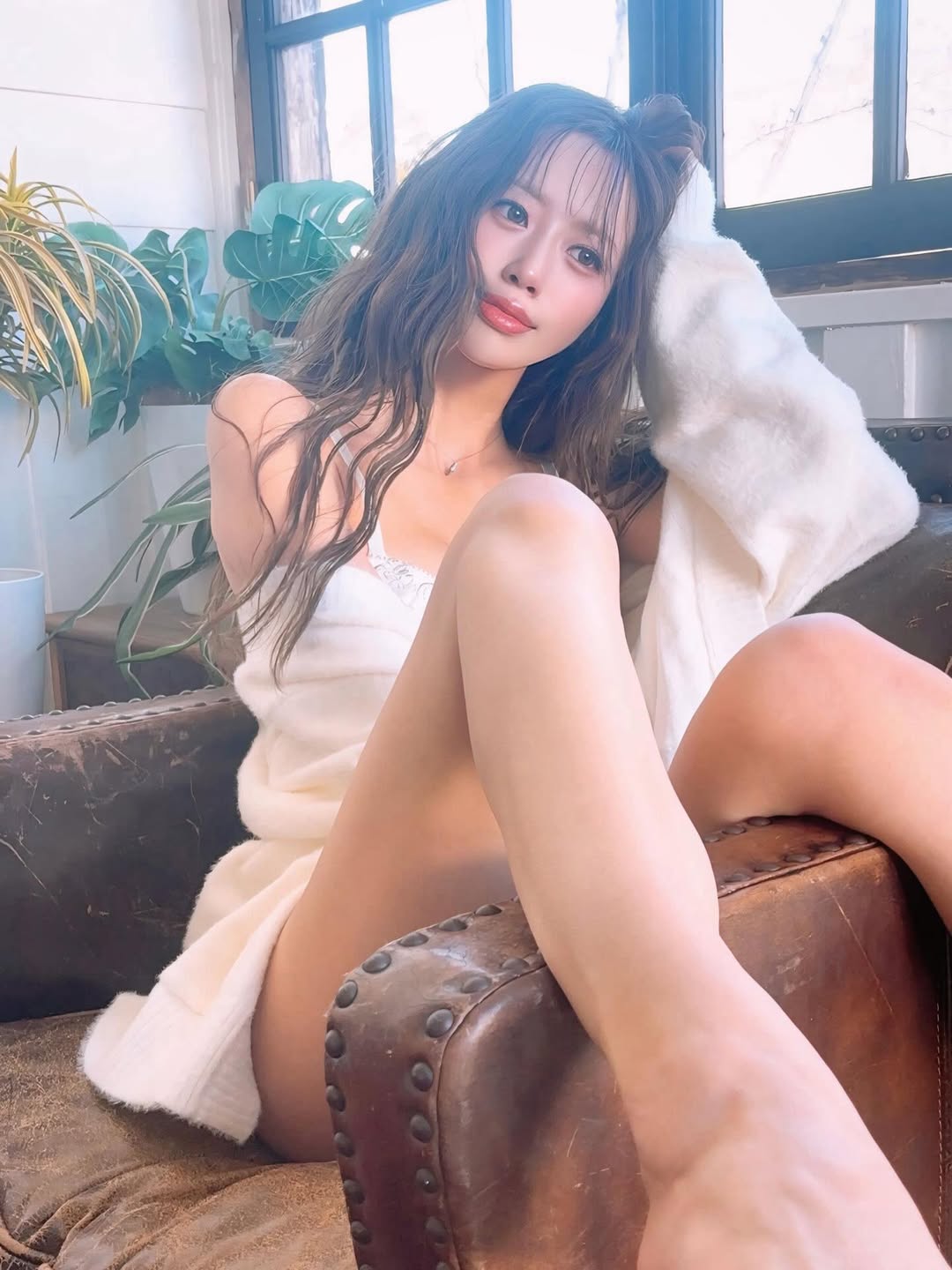 FRIDAY數位寫真集《お嬢様の休日》裡,她在優雅自宅場景中泡澡、床上放鬆,充分發揮9頭身比例的成熟色氣。