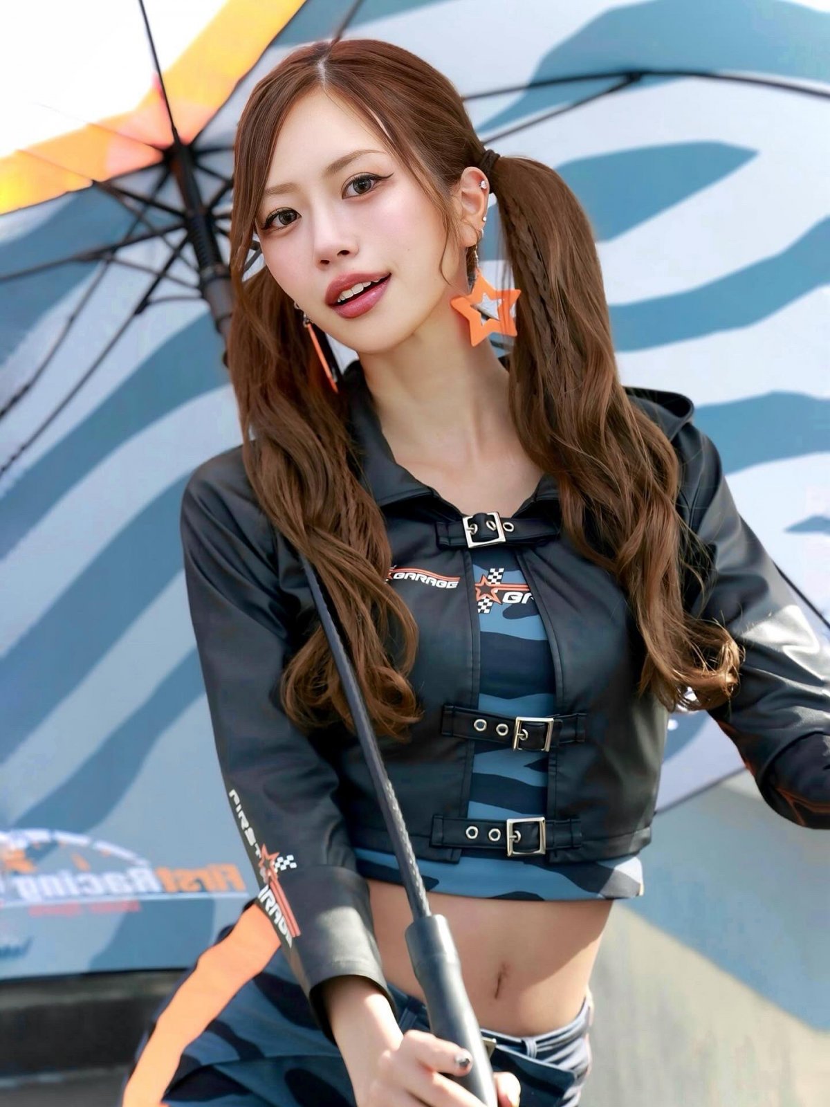 賽車皇后服裝時以比基尼或短褲大膽強調雙腿,肚臍環寫真也被讚「女神過頭」。社群上充滿「世界級美貌」「腿線美到極致」的聲音,單憑視覺就讓人永生難忘。