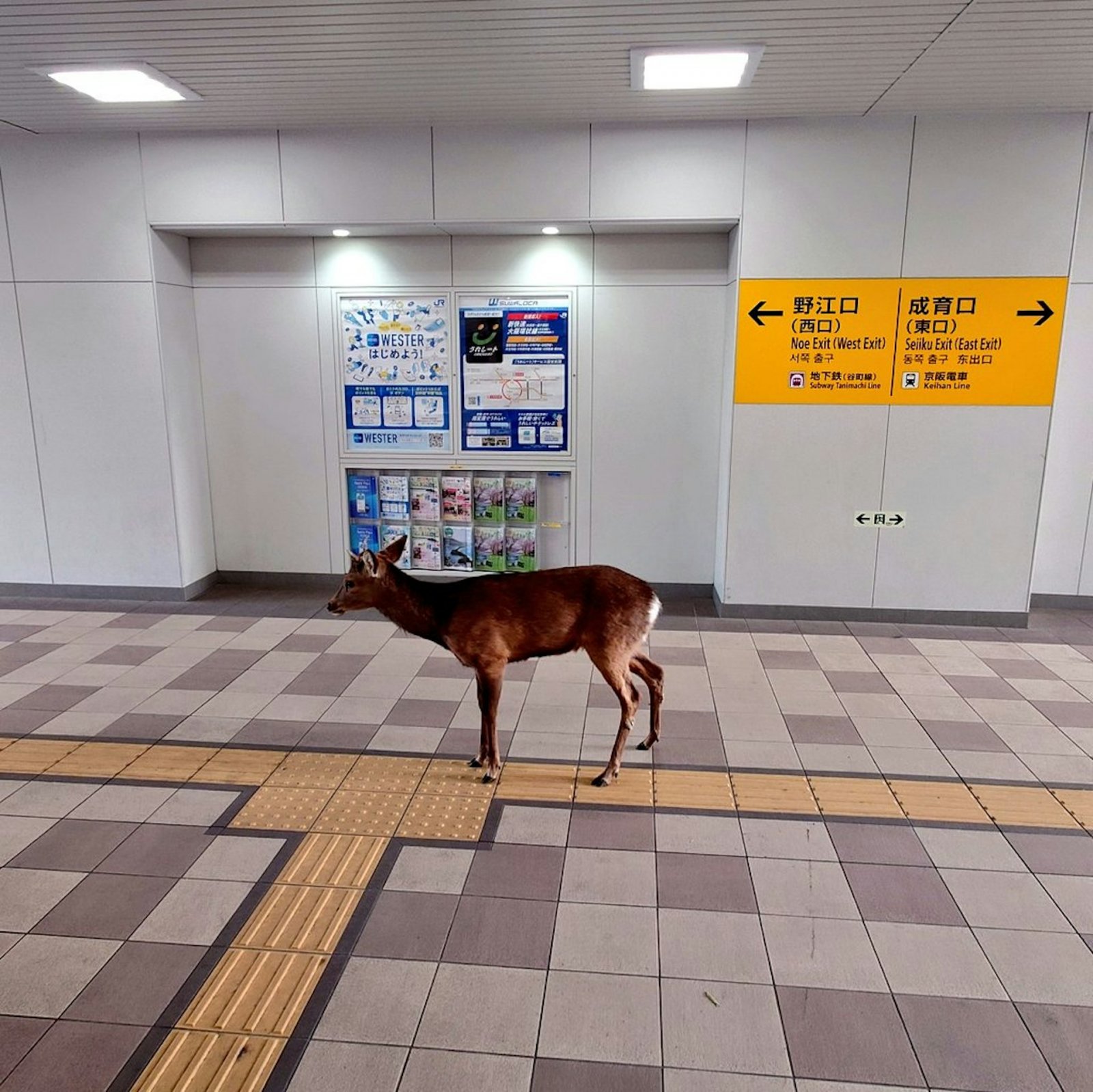 但剛離開鹿群的年輕雄鹿在領地爭奪戰中落敗後,常會遊蕩到很遠的地方,因此無法排除這隻鹿來自奈良公園的可能性。奈良鹿雖是著名觀光資源,但進入城市區域仍屬罕見現象。
