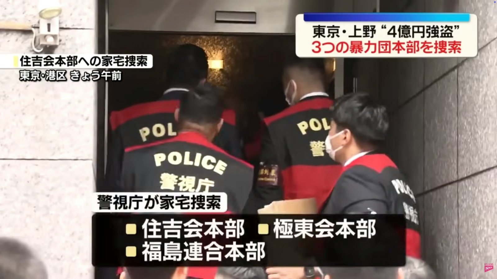 日本警視廳於2026年4月2日對東京上野巨額現金搶劫案展開大規模搜查,同步前往三大黑幫相關事務所執行行動。
