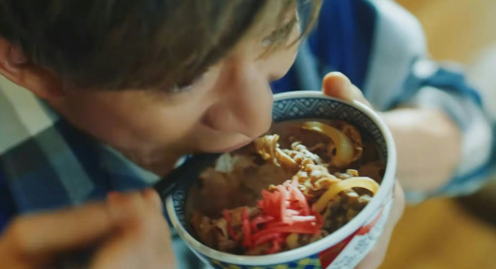 廣告大口享用牛丼 第一口動作引發禮儀討論