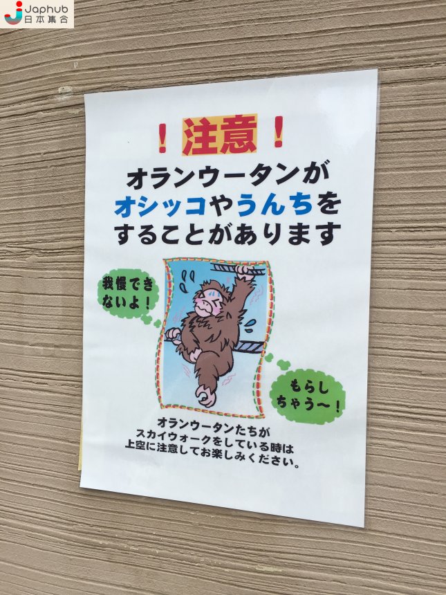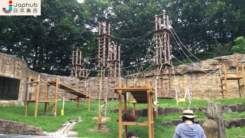 紅毛猩猩還有一個「Sky Walk」的活動,就是讓牠由自己的居所爬到「オランウータンの森(休憩處)」的附近。