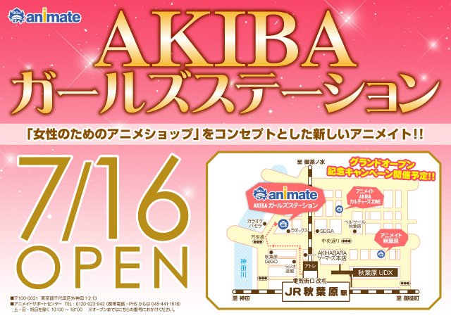 動漫專門店animate於今年7月迎接30周年,同時亦開設第一間女性向的「animate AKIBA girl station」,於7月16日隆重開業!