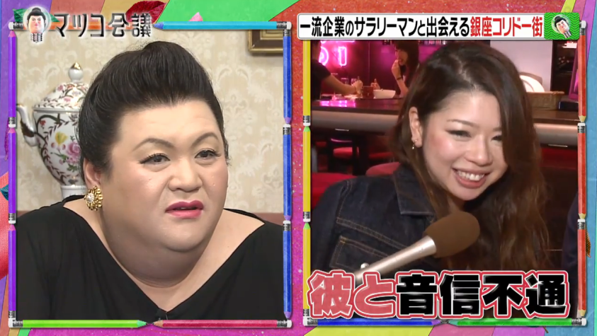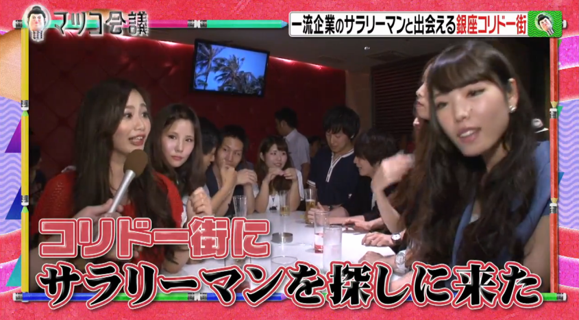 她們很直接的表明目的:「我們為了找商人而來的」。雖然她們好像很肉食,但右邊藍色衫的女性已經有男朋友,今天只是來「幫下眼」。她還分享了自己的戀情故事,她的男朋友在埼玉可麗餅店打工,因為被他的外表迷倒,於是每天都跑去吃可麗餅,不斷的跟他聊天,最後正式交往。