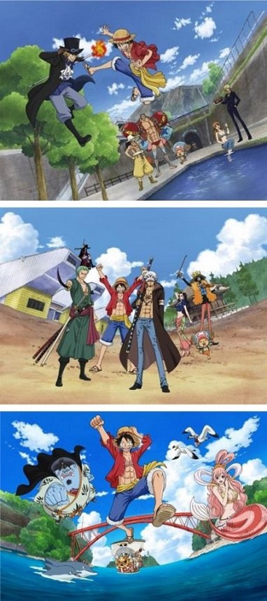▲《ONE PIECE》的主角們分別在熊本不同的地方冒險(由上而下: 高森町、湯前町、上天草市》