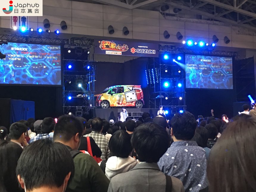 但Niconico可不只是專業人士的集中地,「素人」們也可以上台表演。和上年一樣,兩大卡啦OK營運商JOYSOUND和DAM都在會場內設攤,讓一眾有意於大庭廣眾展歌喉的參加者上台唱歌,順道為自己的計分系統賣一下廣告。