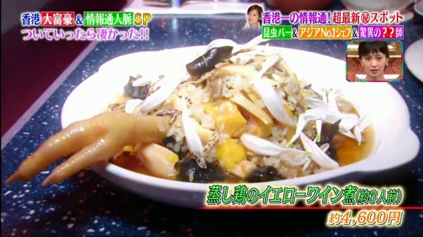第二間要介紹的是高級廣東菜的餐廳Happy Paradise。雖然旁白非常嘴賤的說「由名字到裝潢,都像很廉價的夜總會」其實,這間餐廳的店主是2017年被選為亞洲最佳女廚師的May Chow,而這間餐廳主打新派廣東菜。甲斐小姐說她最喜歡慢煮黃酒雞,每次吃都回味無窮。