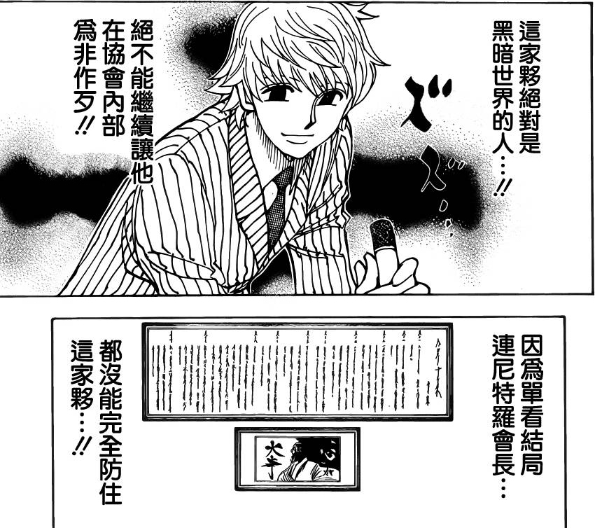 豆面人突然播放一段影片給十二支,影片中出現的自稱尼迪羅之子──比楊德·尼迪羅,令十二支們都相當驚訝。在十二支們接獲V5所發出的「追捕比楊德」命令的同一時間,比楊德正準備跟部下進入禁地「黑暗大陸」。但比楊德卻主動向十二支要求互相交換條件,令十二支需陪同他一起至黑暗大陸。之後尼昂里奧及古拿比加也成為了十二支,而失去念的小岡暫時回鯨魚島好好思考未來走向。