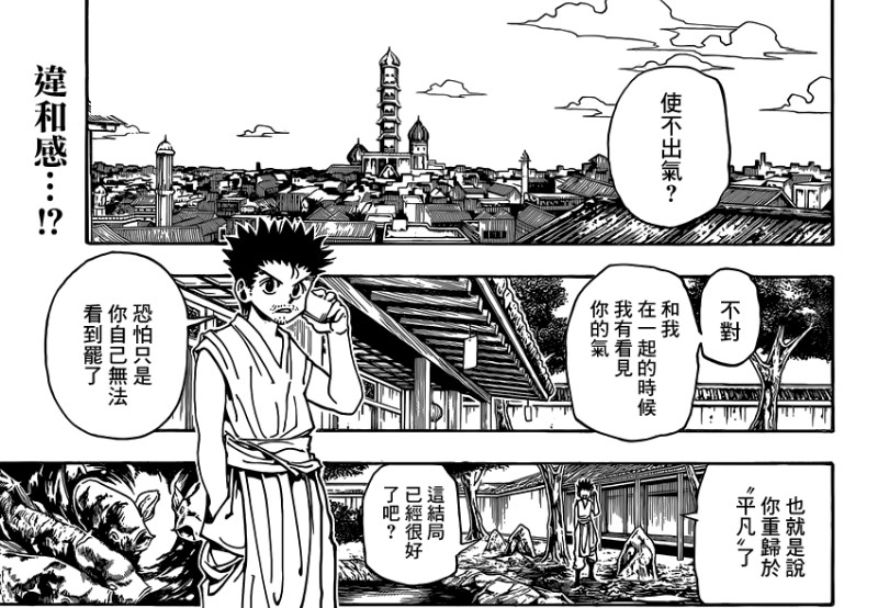 在痊癒後小岡身體機能跟之前一樣良好,不過卻發現使不出氣及念,難道在黑暗大陸篇要全面退場?非也,因為人體只要生存,就會溢出生命能量「氣」,有意識地使用「氣」則稱為「念」。一般來說「念」的訓練方法是不公開的,掌握的方法只有兩種:
