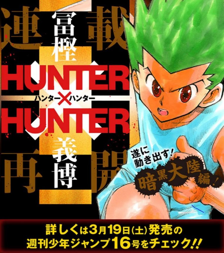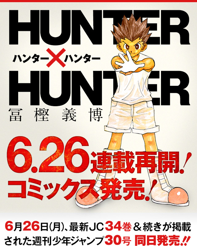 雖然今次復刊時冨樫曾放話「已準備好大量原稿」,可惜隨著國民RPG遊戲《勇者鬥惡龍XI 尋覓逝去的時光》推出,不意外地《HUNTER》再次停刊。雖然冨樫特別聲明今年內應該會再復活一次,不過以目前的故事進度,要看畢「暗黑大陸篇」看來還得等上三五七年。