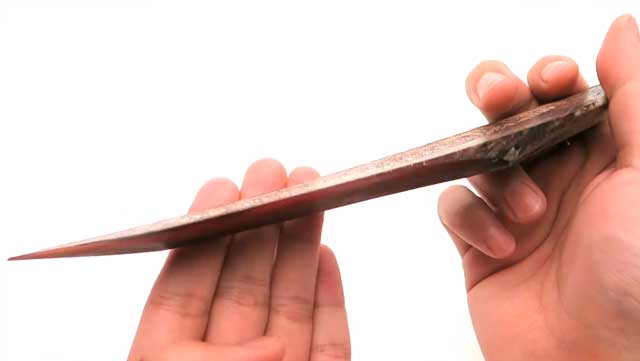 鰹魚乾被健力士世界紀錄評定為世上最堅硬的食物。於是YouTuber「! 圧倒的不審者の極み」就想嘗試把鰹魚乾磨成刀。他使用鰹魚乾的刨子,把它削成刀的形狀。但途中發生小意外,鰹魚乾上出現裂痕,所以他用工具割走一小部份,並繼續「磨刀」。