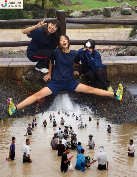 近日,網絡上就流傳著一系列的照片,只見日本妹腿間,爆發出無限的創作力。原相的主角們,似乎是坐了在溝渠間,中間的一個豪放地把腿張開,洪洪的流水就在腿間爆發,非常爆笑。當事人的表情更為照片錦上添花,一臉陶醉似的,令人想入非非。