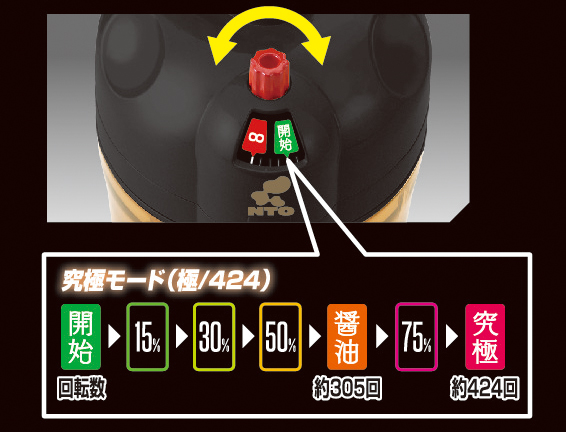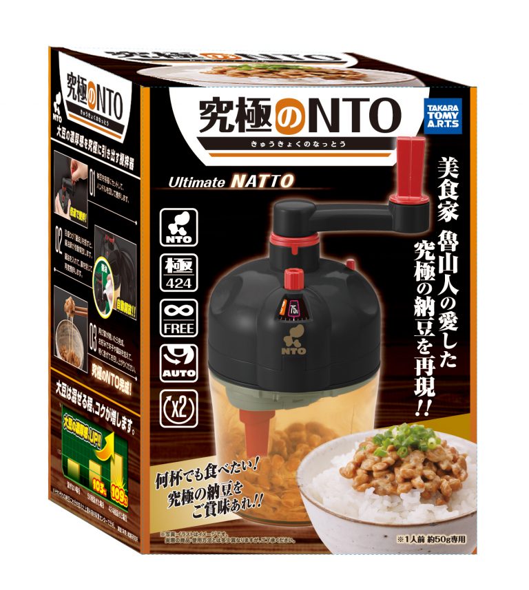 新商品「究極のNTO」是納豆攪拌機。據說攪拌有助喚醒睡眠中的納豆菌,所以至少要順時針攪拌50次。已故美食家北大路魯山人曾考究最理想的攪拌次數,發現攪拌424次後的納豆是最美味的。因此,「究極のNTO」就將固定攪拌次數設定為424次,保證攪拌出最美味、濃厚的納豆。